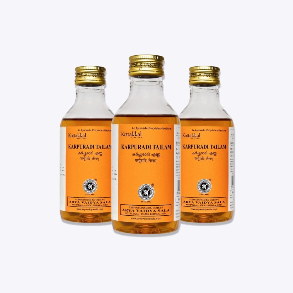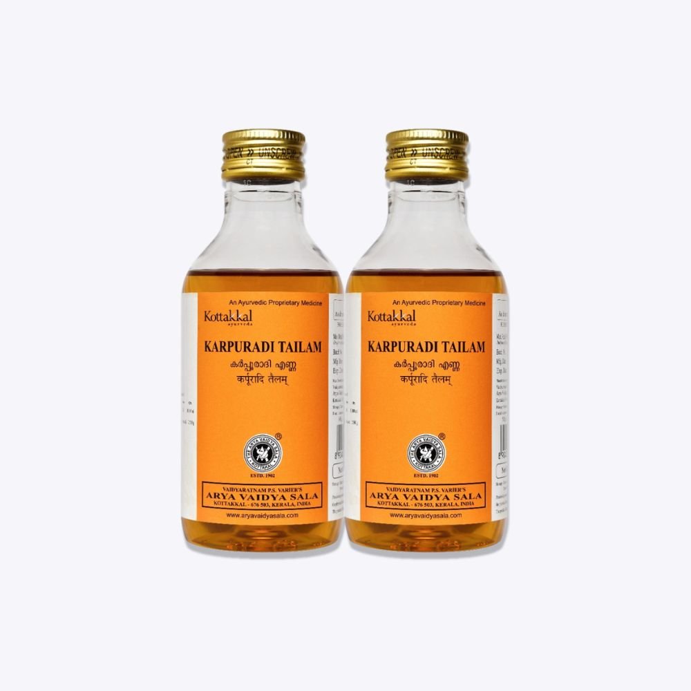 Karpuradi Tailam is a traditional Ayurvedic medicated oil formulated to provide natural relief from joint and muscular pain, stiffness, inflammation, and discomfort. This classical herbal oil is widely used for massage and external application to support ease of movement, soothe tense muscles, and help relieve localized aches.