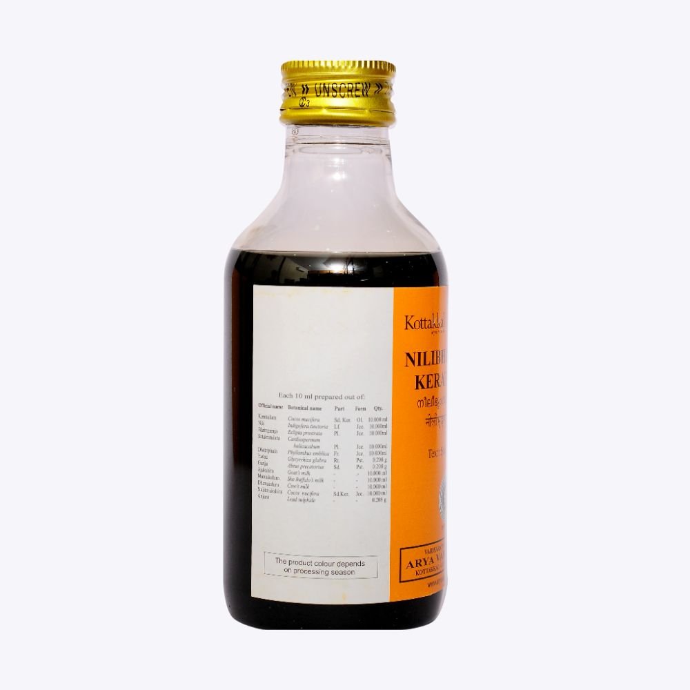 Many Ayurvedic medicines are available to improve the growth of hair. Neelibhringadi Keratailam is a hair-nourishing Ayurvedic preparation for external application on head. This combination is suggested in the reputed classical ayurvedic text, Sahasrayoga. Major ingredients are Neelini (Indigofera tinctoria) Bhringaraj (Eclipta prostrata), Dhatri (Phyllanthus emblica) which are well known for their varied therapeutic effect especially on hair. All the raw materials for manufacturing the oil are tested in our quality control laboratory which is accredited by the Department of Ayush. The organoleptic properties of the finished product is checked by senior physicians of Arya Vaidya Sala. We are manufacturing Neelibhringadi in different oils ie. coconut oil and gingelly oil based. One can choose any of these according to one’s familiarity. Now you can easily order ayurvedic medicines online from our online store.